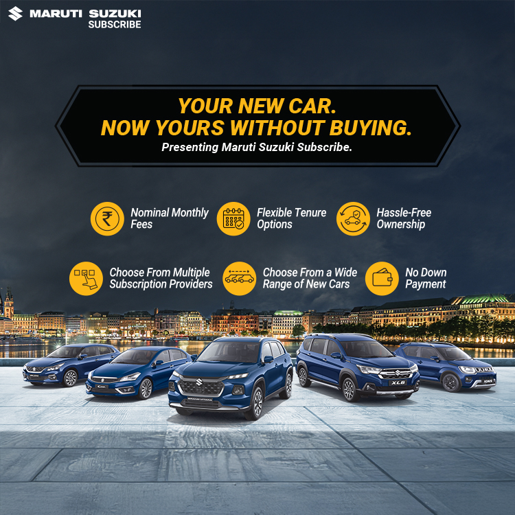 Located in Kottayam, Sai Service offers a plethora of options of Nexa cars for Maruti Suzuki Subscribe. You can choose your desired Maruti Suzuki car and drive it home at nominal monthly fees for a variety of flexible tenure periods. Whether you prefer Hatchback, Sedan, SUV or even MUV you are sure to find it at Sai Service, with an easy Maruti Suzuki Subscribe plan.